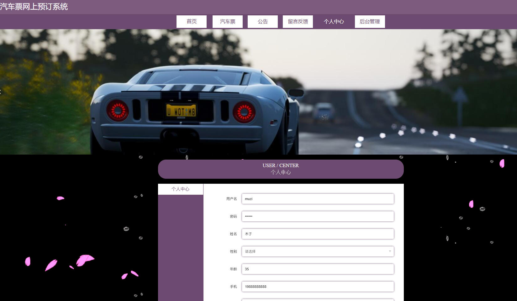 个人中心:查看个人信息,修改密码