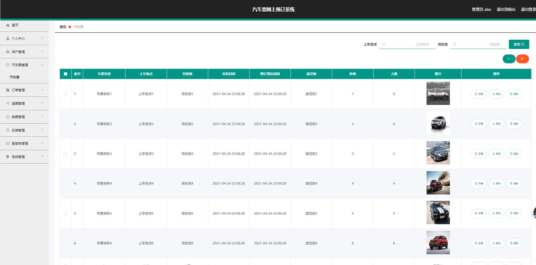 汽车票管理:汽车票信息的增删改查