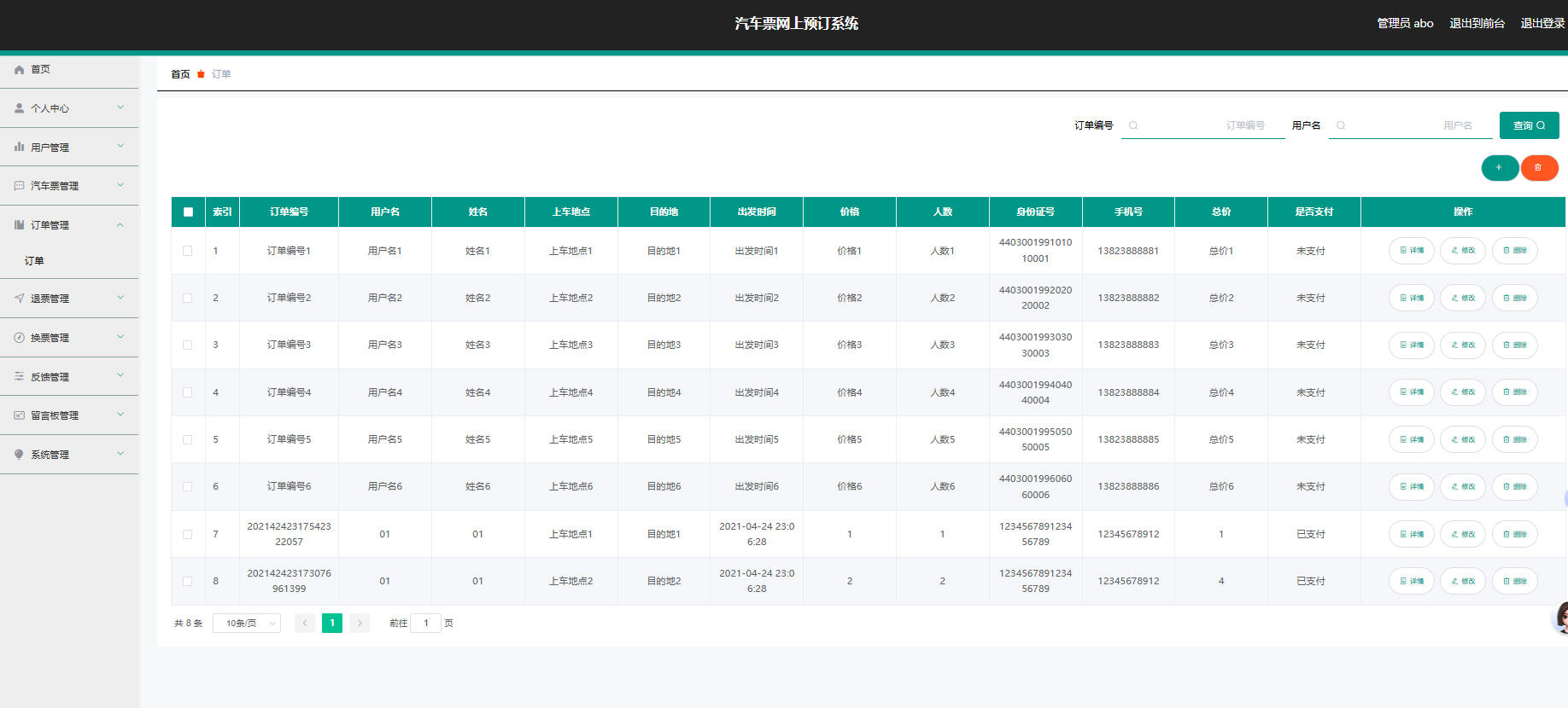 订单管理:订单信息的增删改查